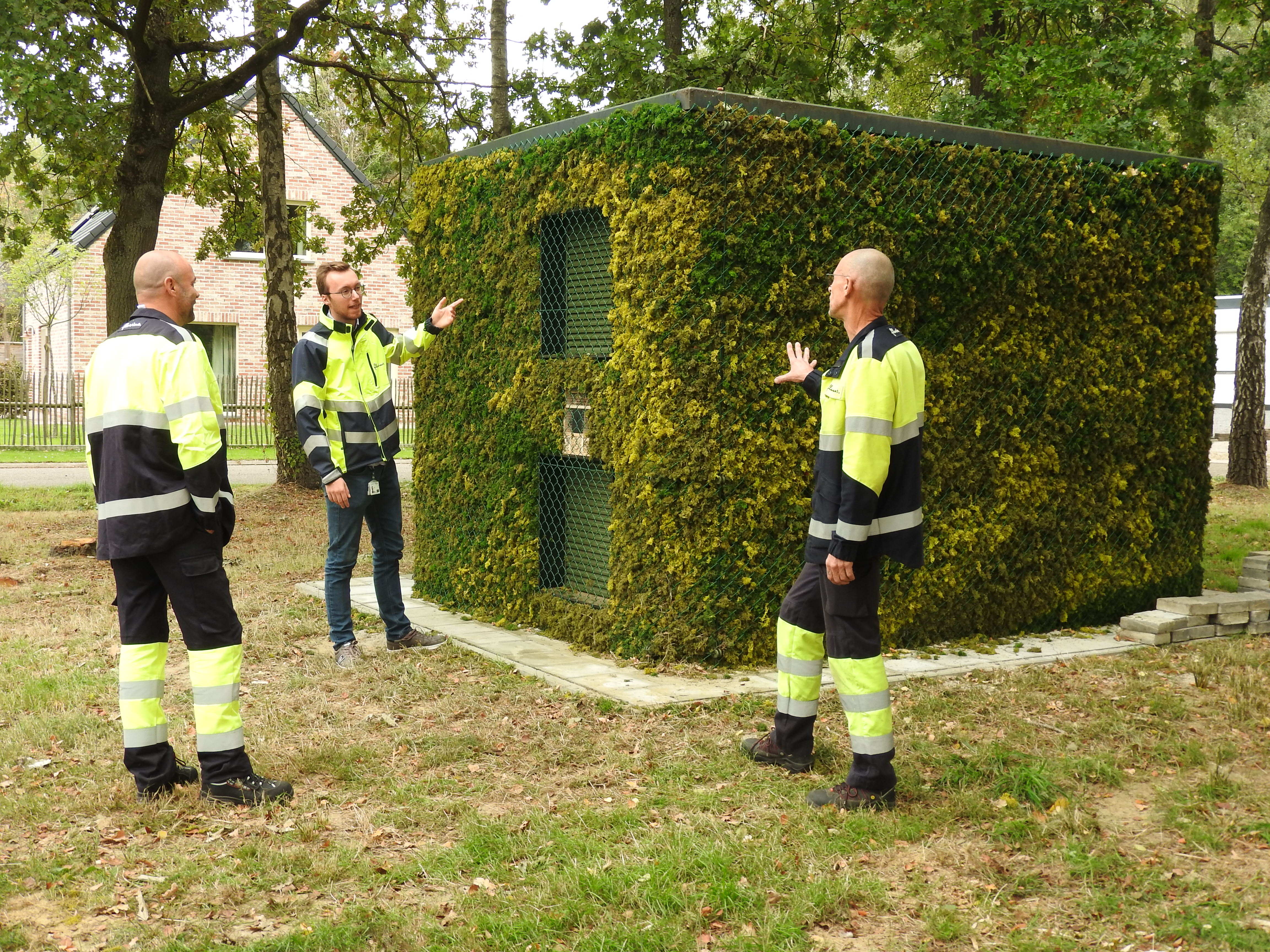 De mosmuren bieden een duurzame oplossing voor de meer dan noodzakelijke extra elektriciteitscabines die Fluvius de komende jaren plaatst.